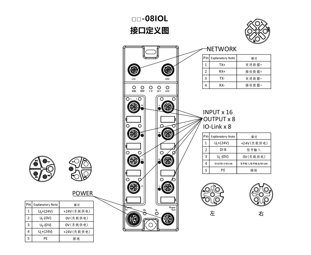 支持EtherCAT協議 轉 8xIO-Link主站,Class A,24VD,IP67防護等級