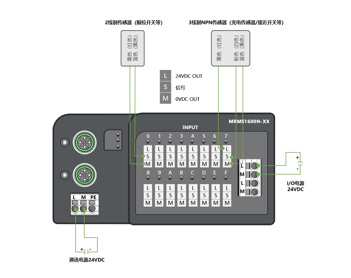 面板式快接線分布式I/O,EtherCAT通訊,2xM12,可級聯(lián);數(shù)字量16入 NPN,24VDC,歐式彈簧端子;導(dǎo)軌安裝&打孔安裝(下單時需備注)